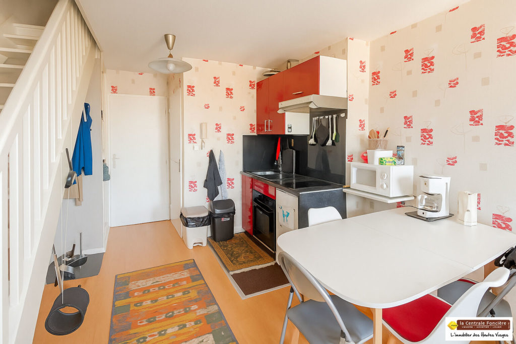 En plein coeur de Gérardmer, ce duplex de 37 m² situé dans une résidence sécurisée comprend un séjour, une salle de bain, des WC séparés et une chambre à l’étage.