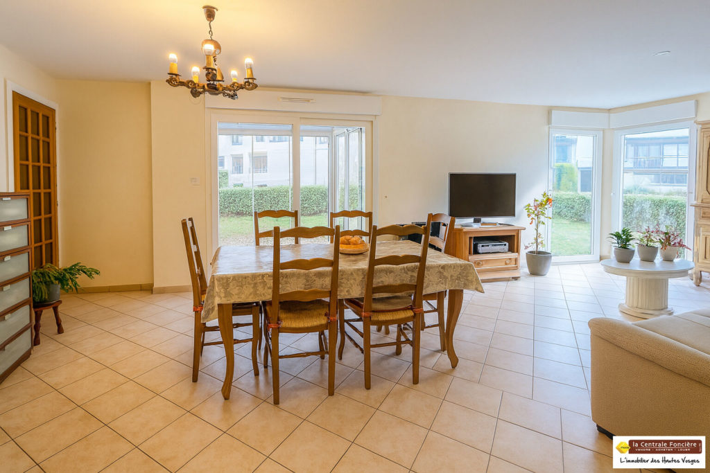 L’espace de vie comprend un hall d’entrée, un salon-séjour de 33 m² agrémenté de baies vitrées ouvrant sur un jardin d’hiver, ainsi qu’une cuisine fermée, aménagée et équipée. La partie nuit se compose de deux chambres, d’une belle salle d’eau moderne avec grande douche à l’italienne, d’un WC séparé avec lave-mains, et d’une buanderie.