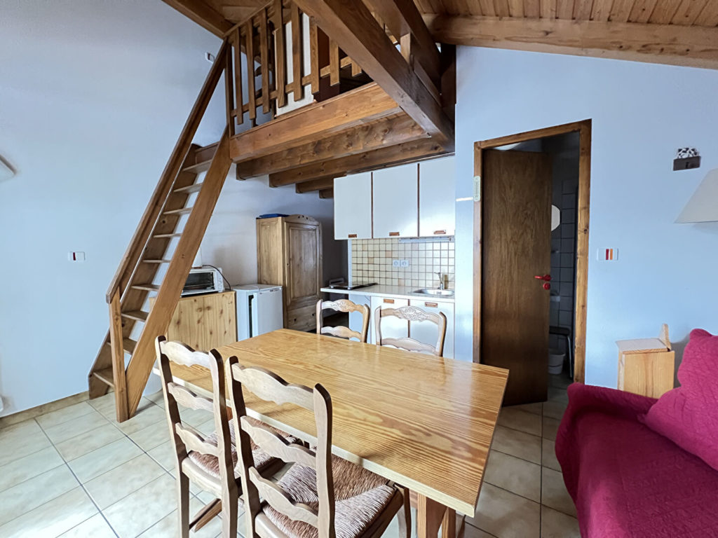Il se compose d’une entrée privative avec placards, une cuisine aménagée , un séjour lumineux ouvrant sur une terrasse avec vue sur les hauteurs, une chambre , salle d’eau, WC séparé et d’une mezzanine offrant un espace nuit supplémentaire