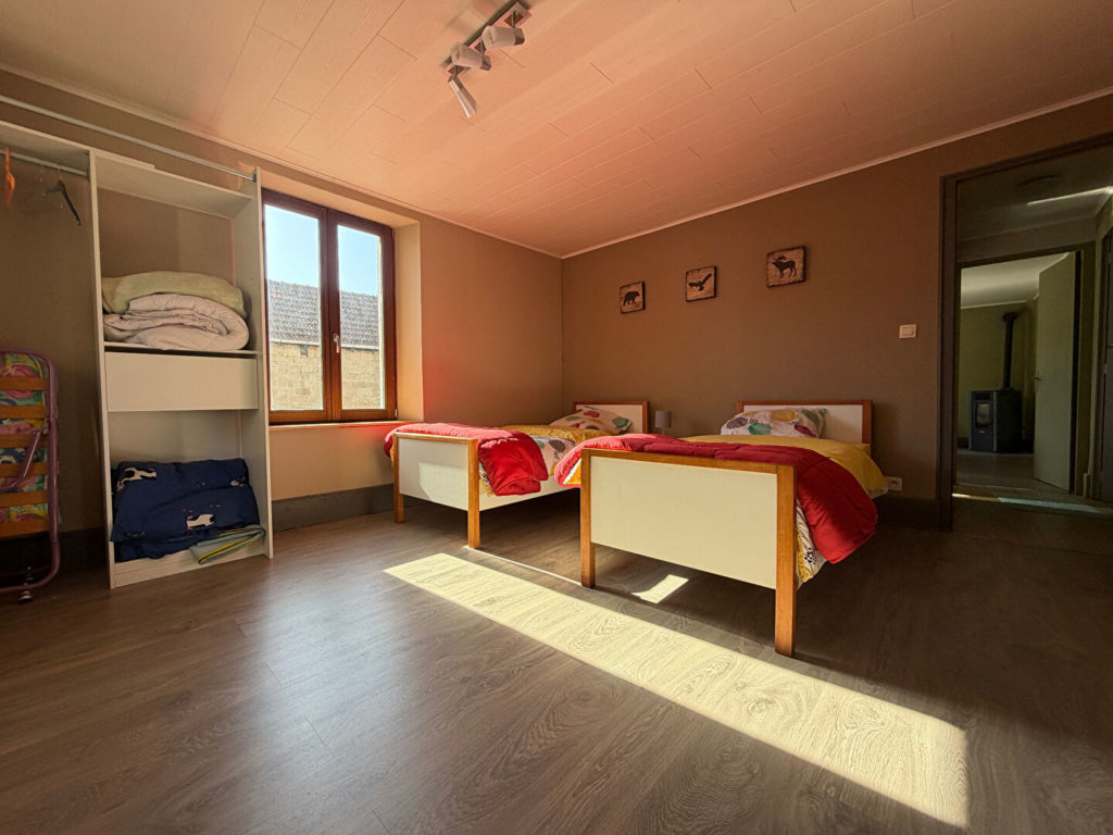 A l’étage, le second appartement se compose également de deux chambres, d’une salle d’eau et de WC séparés.